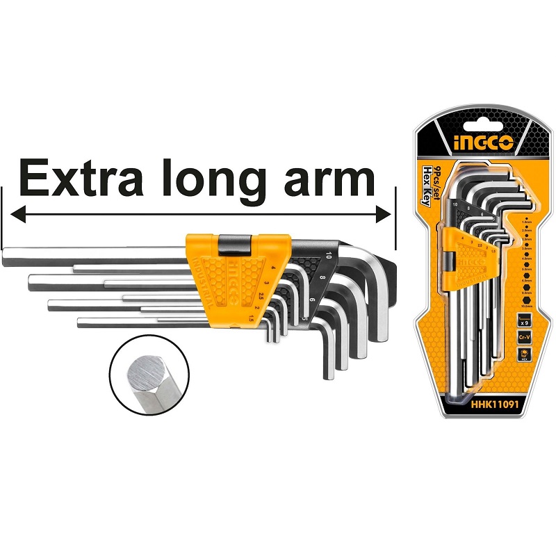 9-delni set imbus ključeva Materijal imbus ključeva u setu: Cr-V Veličina imbus ključeva: 1.5-10mm Dugački Termički obrađeno i hromirano